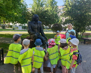 Воспитанники путешествуют к памятникам Бориса Окрестина, героя Великой Отечественной войны, Якуба Коласа, где прослушивают произведения писателя. У памятника Владимиру Мулявину звучат песни о родине на белорусском языке.