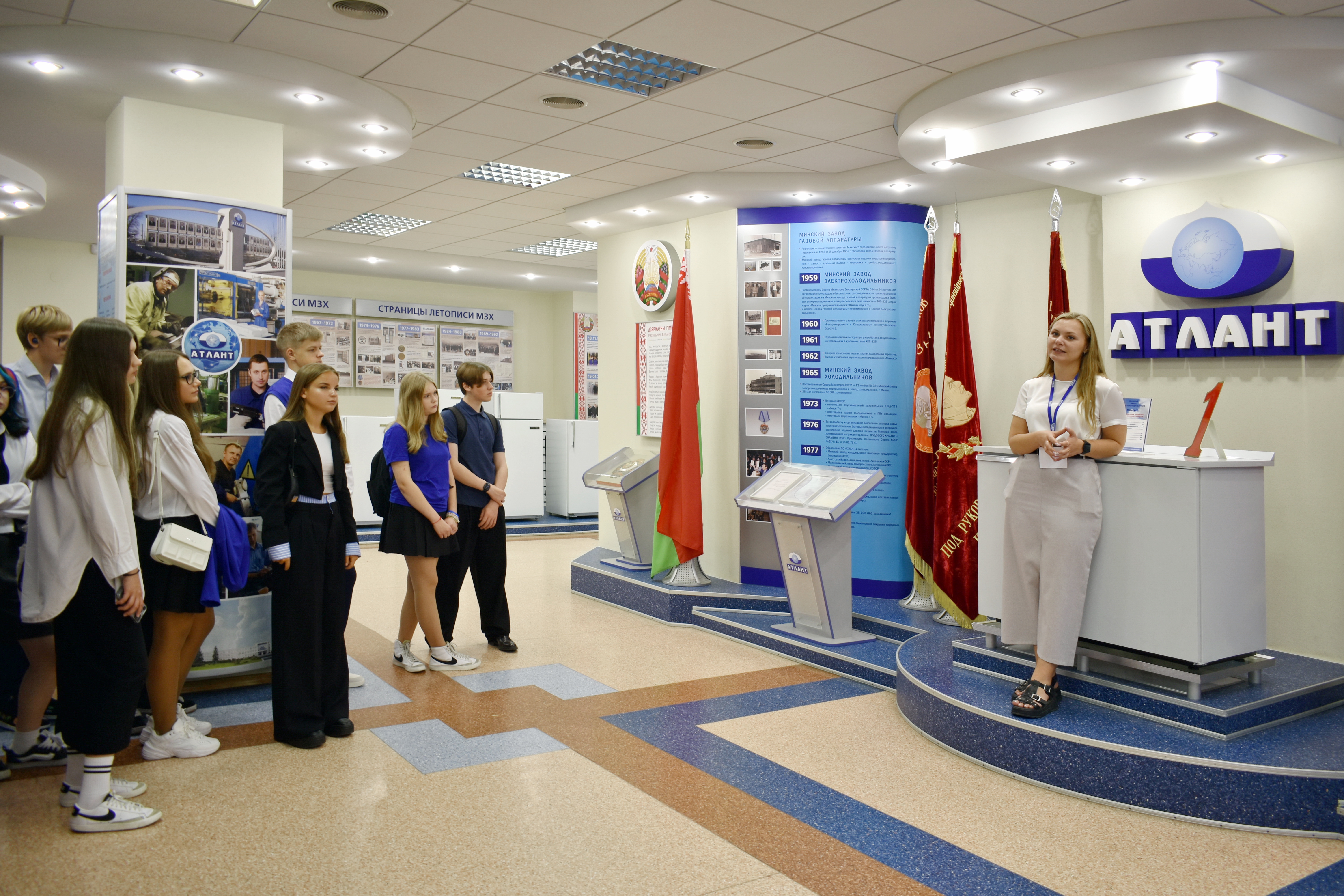 Юных гостей приветствовал генеральный директор предприятия Дмитрий Харитончик. Он сказал несколько напутственных слов, одобрил решение ребят попробовать себя в инженерном деле, ведь именно от их выбора зависит как собственное будущее, так и будущее страны.