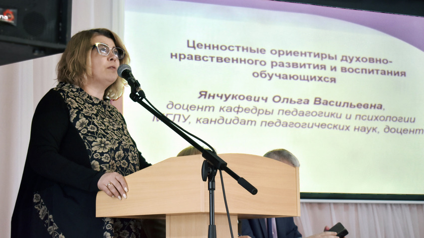 Ценностным ориентирам духовно-нравственного развития и воспитания обучающихся посвятила доклад доцент кафедры педагогики МГЛУ Ольга Янчукович.