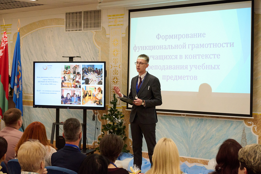 Учитель начальных классов Минской международной гимназии Лидия Авсюк представила опыт в методическом квесте «Формируем функциональную грамотность: учимся и действуем». Учитель биологии средней школы № 53 Сергей Чудиловский дал мастер-класс «Практико-ориентированные задания для формирования у учащихся естественно-математической грамотности». Проблеме грамотности в сфере информационных технологий был посвящён мастер-класс «Искусственный интеллект: дань моде или польза для обучения» учителя информатики средней школы № 93 Павла Кушнеревича. Отметив ряд преимуществ, которые может дать педагогу умение пользоваться технологиями искусственного интеллекта, Павел Вячеславович завершил мастер-класс уместным напоминанием: «Настоящий учитель тот, кто учит человечности!»